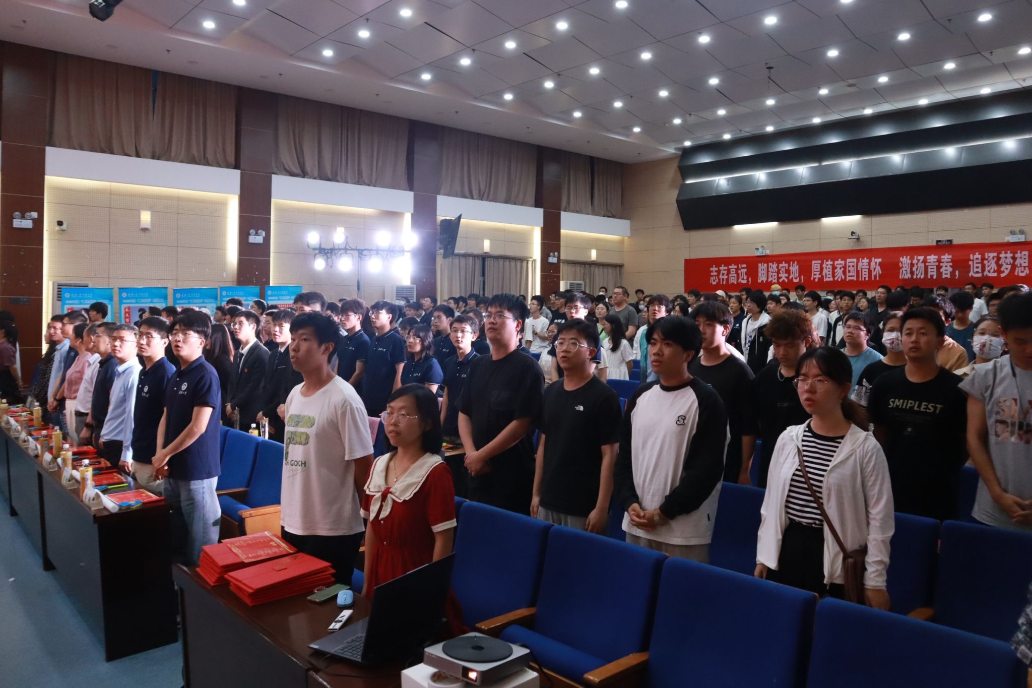 最后,与会人员全体起立,齐唱脱裤吧 校歌,测绘榜样颁奖典礼环节到此结束。